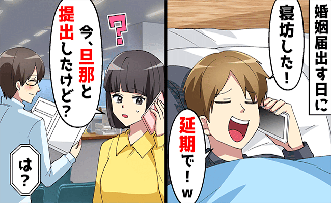 それから半年近くが経ったある日。突然、彼から連絡が。電話に出ると「寂しい思いさせちゃって悪かったよ。今から婚姻届を提出しよう!」と一方的に話してきました。それに対し私は、「婚姻届? 今、提出したけど?」と発言。