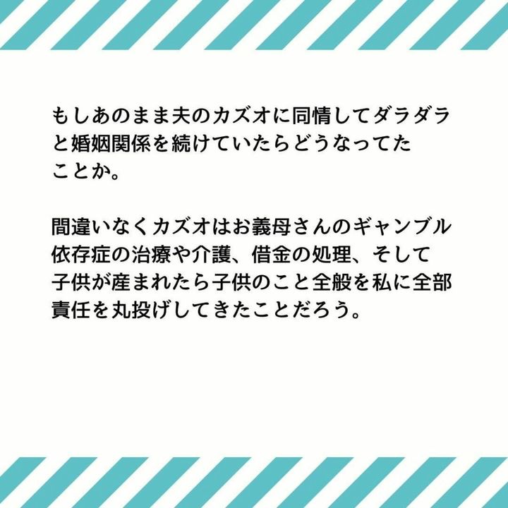 こうした家族の大問題を夫に相談しますが、夫も問題から目を背けてヒロミに丸投げ…。ヒロミは夫や義母との明るい将来が見えず、離婚に踏み切ることにしました。