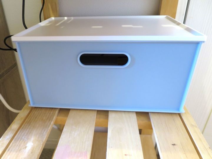ケーブルボックスには、ニトリのNインボックスクォーターと、Nインボックス用のフタを使いました。持ち手の穴から電源タップや充電コードを出すことができます。