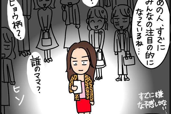 誰もがこれからの小学校6年間、付き合っていくことになる保護者たちの様子を伺いつつ、うまく付き合っていける人たちか、不安に思いながら参加しています。そんななか、あの派手すぎるママはもちろん注目の的です。さっそく保護者たちはヒソヒソと噂話を始めていました。