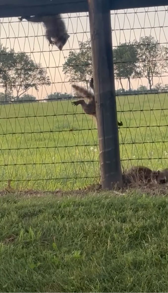 しばらくすると、アライグマの赤ちゃんたちはフェンスに張りついて遊び始めました。