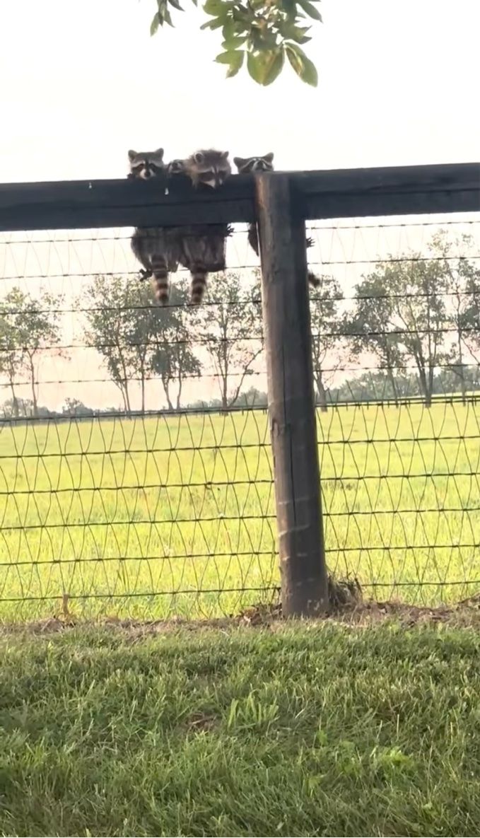 フェンスの上からアライグマの赤ちゃんたちが「こんにちは」。仲良しな様子がかわいすぎる!【アメリカ・動画】