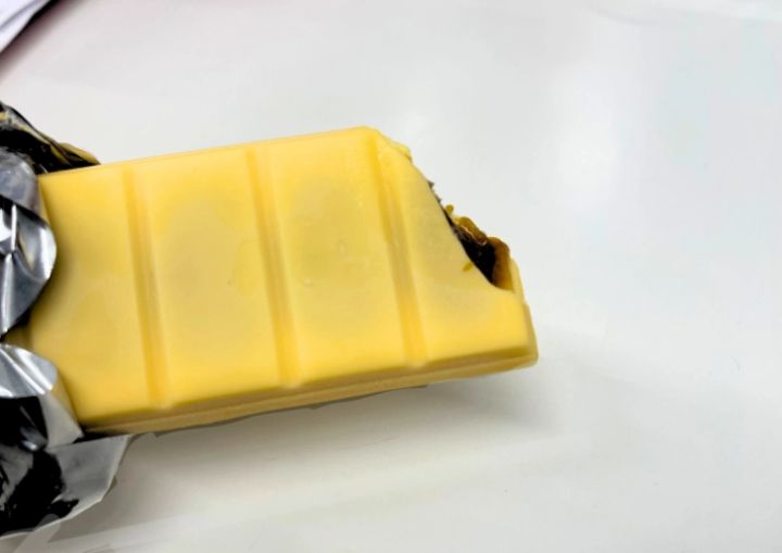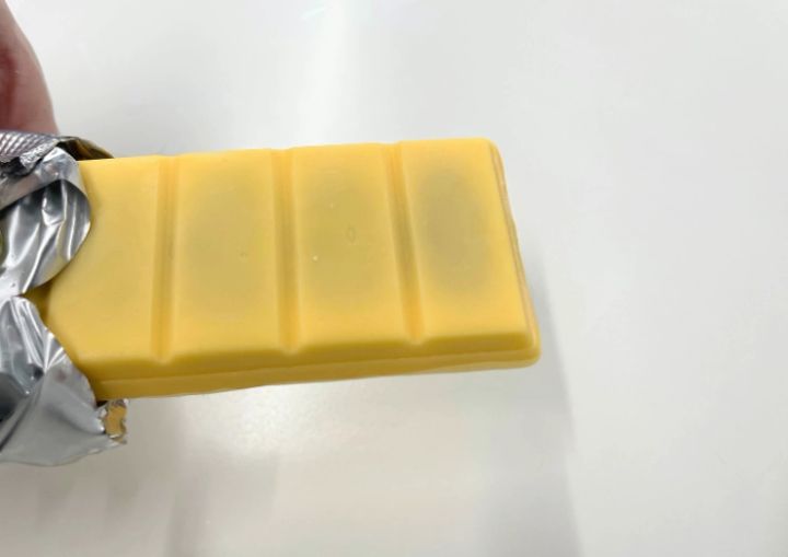 プリンをイメージしたアイスの外側は、プリン風味のチョコで覆われています。このチョコは板チョコアイスという名にふさわしいほどの存在感!