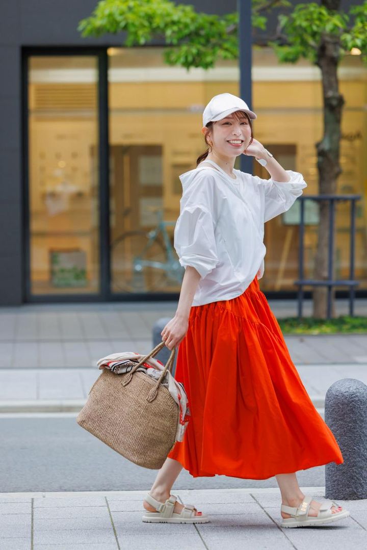 bangle/Tiffany & Co. ring/HERMÈS , kajabijoux , Van Cleef & Arpels outer , inner/UNIQLO skirt/SHE Tokyo bag/manimaris sandals/DIOR cap/pois