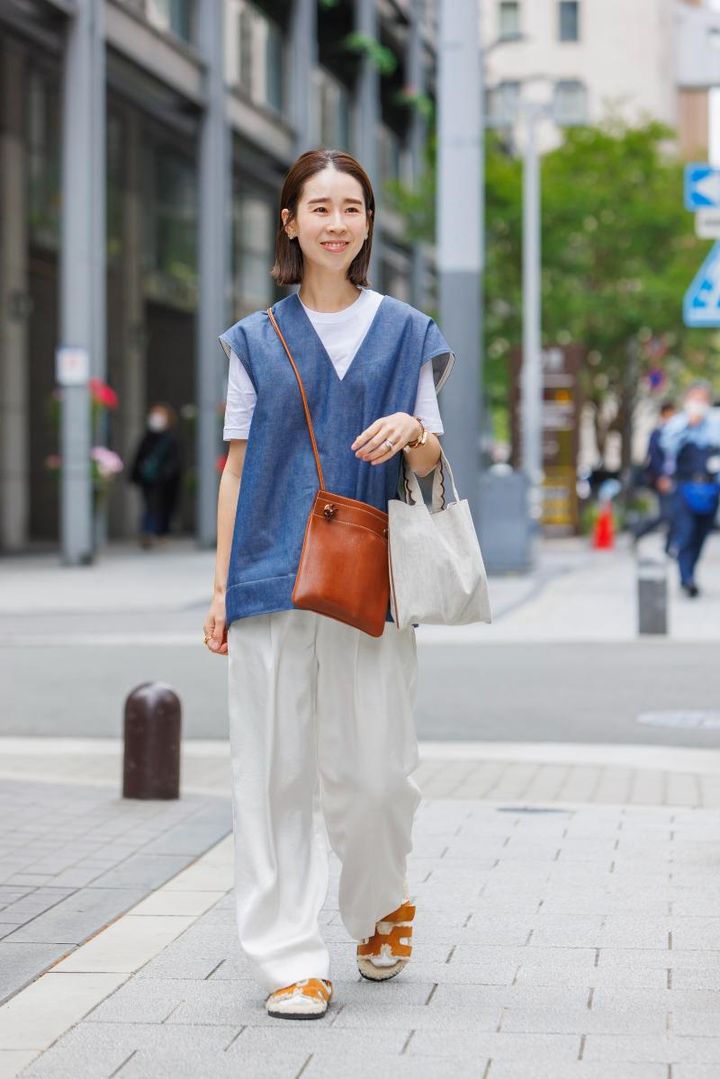 bracelet , ring , pierced earrinigs/Van Cleef & Arpels watch , bag , sandals/HERMÈS t-shirt/CLANE vest/shirocon pants/yori sub bag/elu