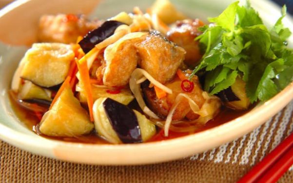 カリッと揚げたサバと素揚げしたとろとろナスは相性抜群。ナスはまだらに皮をむくことで、皮に含まれている栄養や旨味を残しつつ味がしみ込みやすくなります。より味をなじませたいのなら、漬ける時間を長くしましょう。