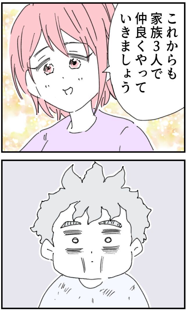 かおりさんはそう言った後で「これからも、家族3人で仲良くやっていきましょう」と笑顔を見せました。かおりさんの言葉を呆然としてきいていたいちろうさん。