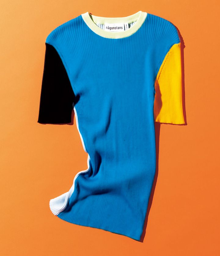 コンパクトなリブニットは、意外とどんなボトムスにもマッチ。これ一枚で元気のよいオシャレが叶います。