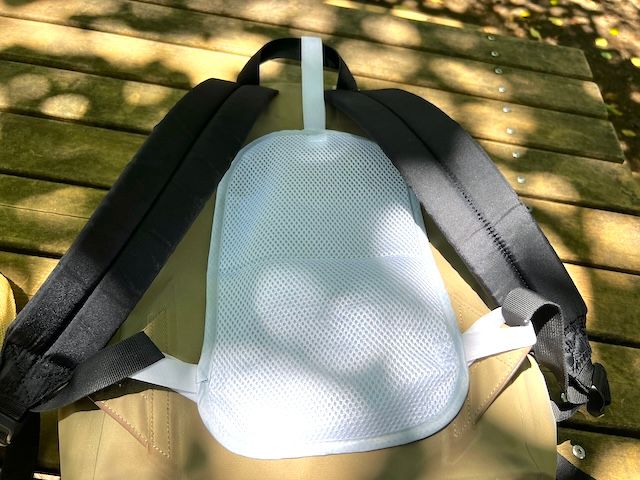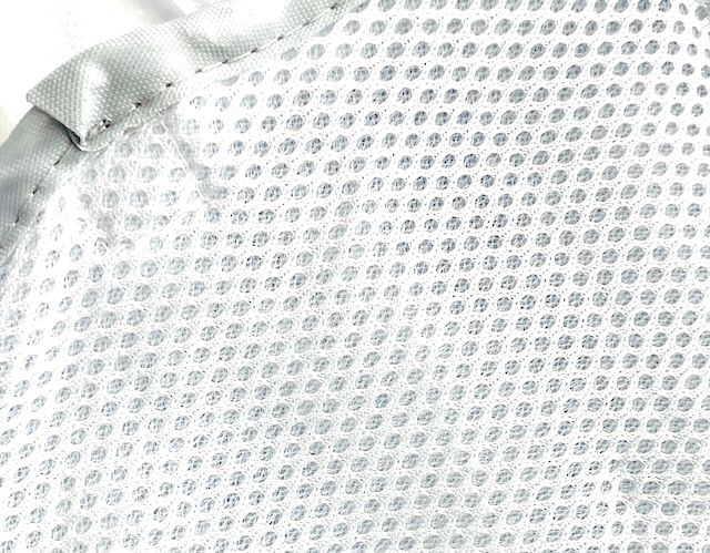 裏を見てみると、背中に当てる部分は白いメッシュ。