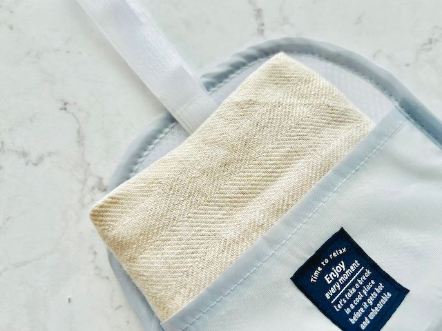 実際に使うときは、保冷剤を布などに包んでポーチのポケットに入れます。