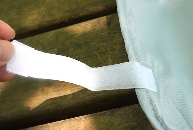 3カ所のベルトをそれぞれ上部の持ち手と左右の肩掛け部分に通して、面ファスナーを留めます。これで装着完了!