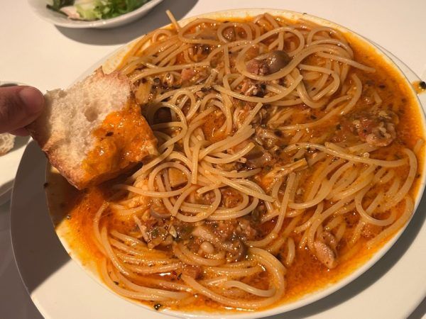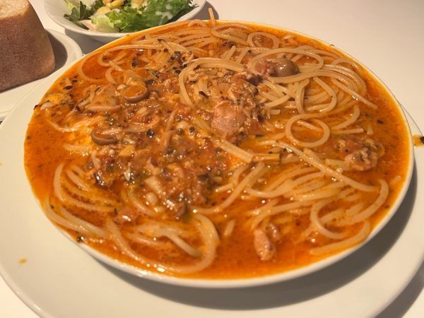 単品のメニューもありますが、ランチタイムには、バケット・サラダ・シャーベットがついたお得なセットもあり、お昼に行かれる場合はランチセットもオススメです。 どのスパゲッティも美味しいのですが、私は今回お店の名物でもある「絶望のスパゲッティ」を注文しました。