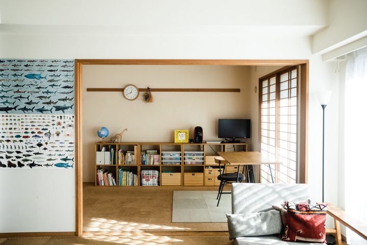 子どもたちを小学校と保育園へ送ったあと、手始めに床に散らばったおもちゃを片づけ、ロボット掃除機を回し、窓を開けて空気を入れ替えます。事前に回していた洗濯機からパジャマやシーツを取り出して干し、朝食の食器も食洗機にかけてしまいます。集中すればこれらは15分ほどで完了。