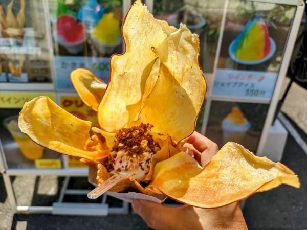 今回ご紹介するのは、7月に川越市にオープンしたキッチンカー「フォーチュン」。 パリッ、ザクッとした食感がたまらない「エンジェル芋チップアイス」は、今、川越で話題の新しい食べ歩きスイーツ。 どんな味わいか早速、食べてみました!