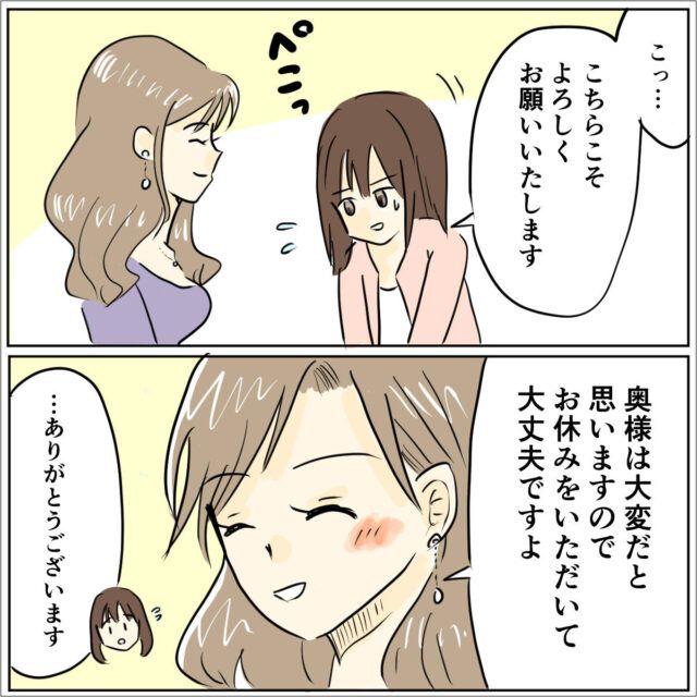 挨拶すると、ユウコさんは優しい笑顔で「奥様は大変だと思いますので、お休みをいただいて大丈夫ですよ。」と言ってくれました。