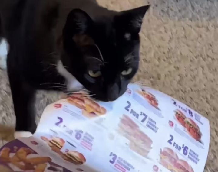 3. チーズバーガーおすすめにゃ!ランチを勧めてくる猫さん。