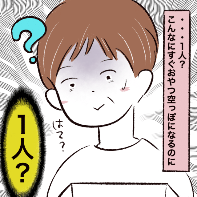 その答えにお母さんは驚愕します。「・・・1人?こんなにすぐおやつ空っぽになるのに1人?」てっきり数人のお友達が来ていたのだろうと思っていたお母さんは、たくさんあったおやつをさなかちゃんが1人で食べていたと知り驚きました。