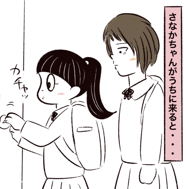 小学校時代の同級生さなかちゃんが放置子だったとお母さんから聞き驚いたものの、思い返すと思い当たる節があったまるさん。両親が共働きで小学2年生から家の鍵を持って登校していたまるさんの家にさなかちゃんが初めて遊びに来た日以降、毎日まるさんの家に遊びに来るようになったさなかちゃん。最初は「遊びに行っていい?」と聞いていたさなかちゃんは次第に「行くね!」と断言するようになり「帰ろーっ」とまるさんの家に直行するようになりました。
