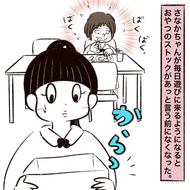 さなかちゃんが毎日遊びに来るようになると、今まであまり減らなかったおやつのストックがあっという間になくなっていきました。