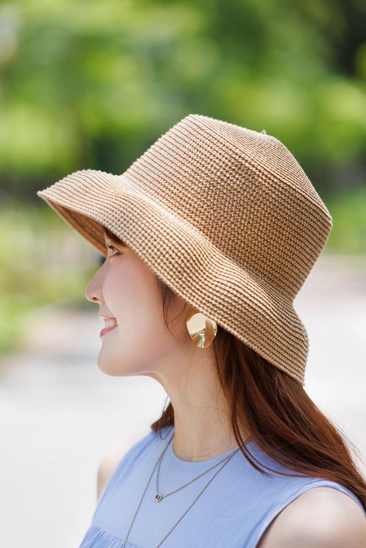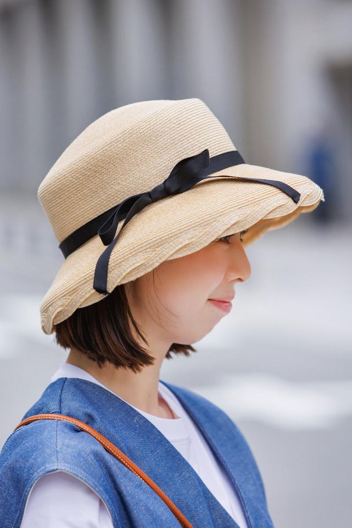 麦わら帽子は変形タイプを選んでハツラツと見せます