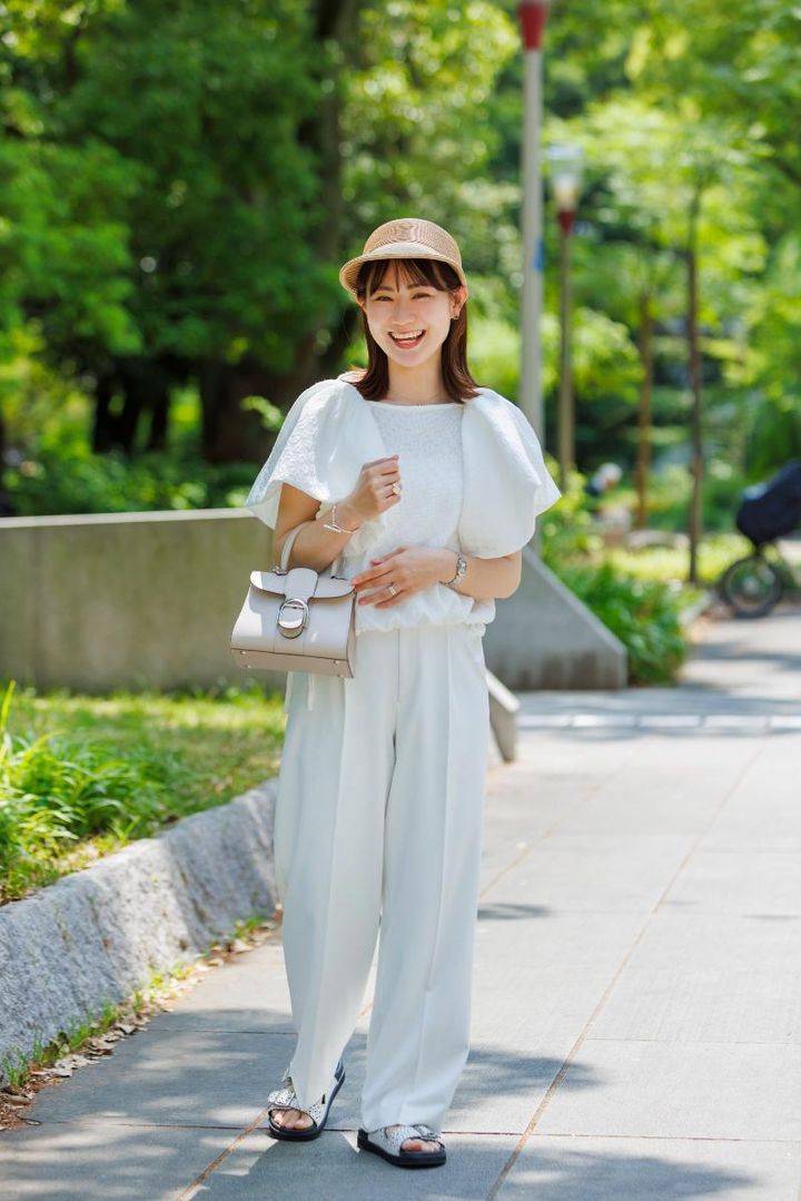 子どもと一緒のときは、日傘よりも帽子のほうが便利ですが、夏らしい麦わら帽子はマダム感が出てしまうという声も……。そんな難しいアイテムを素敵に取り入れている関西ママ3人をスナップしました。