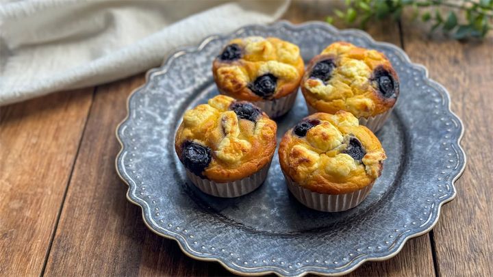 冷めても絶品♡「ブルーベリーとクリームチーズの豆腐米粉マフィン」