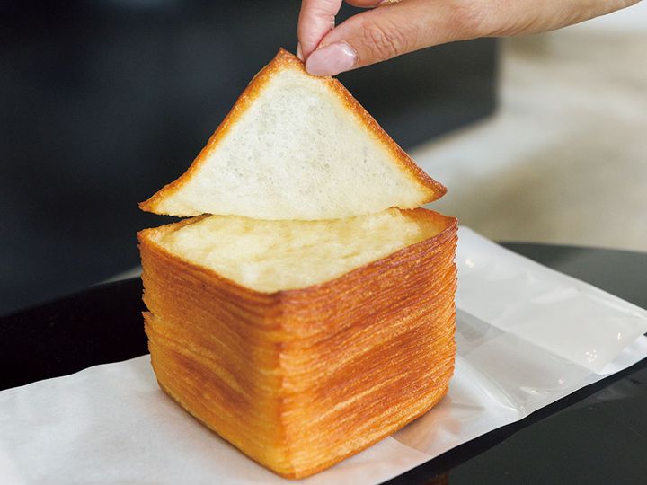 1枚ずつめくるのが楽しくなるティッシュブレッドの他、トリュフ入りのパンなど個性派ブレッドが多く並びます。ティッシュブレッド₩7,500。