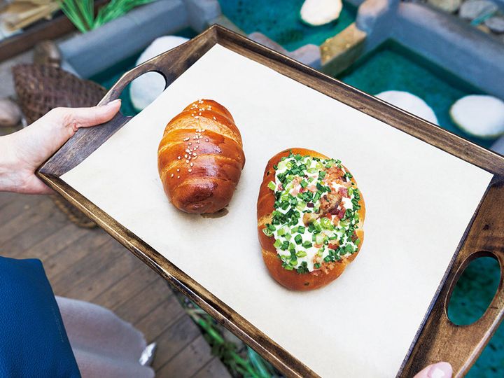 益善洞らしい韓屋の建物が話題の塩パン行列店。1番人気はやっぱりシンプルな塩パン。サクモチな食感がたまりません。【左】塩パン₩3,000【右】ネギクリームチーズ塩パン₩4,500。