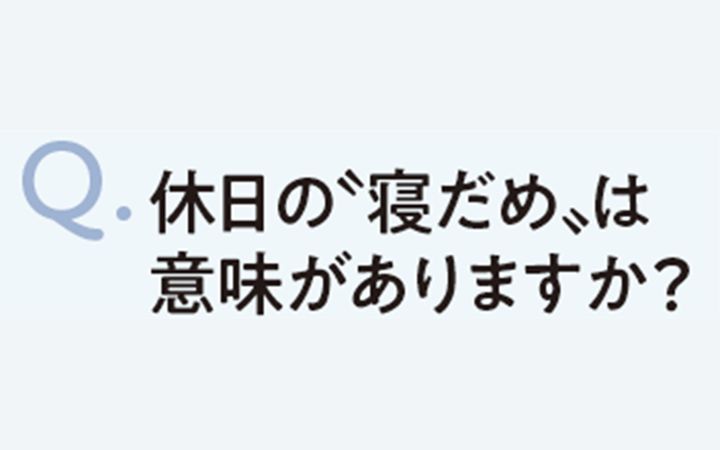 「休日に長く寝ることで睡眠を〝貯金〟するような効果はありませんが〝睡眠負債〟を返済することは可能。目覚ましをかけず普段と同じ時間に寝て、目が覚めた時間がいつもより2時間以上遅いなら〝睡眠負債〟=寝不足という証拠。〝睡眠負債〟は眠らない限り解消しないので寝て返済する必要があります。理想は平日の睡眠時間+2時間まで、遅くても午前中には起きましょう。昼過ぎまで眠ってしまうと夜の寝付きが悪くなり、体内時計も乱れ体調不良の原因に」