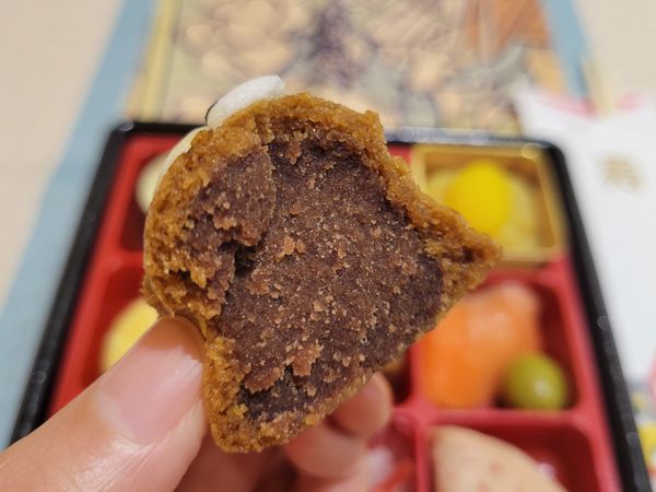 二の重は「洋のにぎわい重」。じょうよ饅頭「ジェリー」はチョコあん入り。今年初めてラインアップされた鶏肉の赤ワイン味噌風味(チーズのせ)、明太風味魚卵和えなど、多彩な味わいを楽しめます。