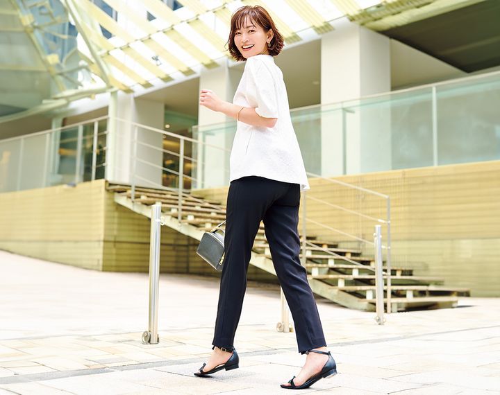 太ももが細くなったら…黒の細パンツをムッチリさせずにシュッと穿きこなしたい!