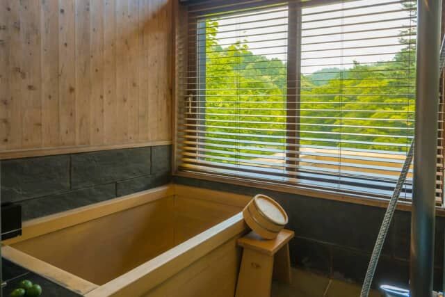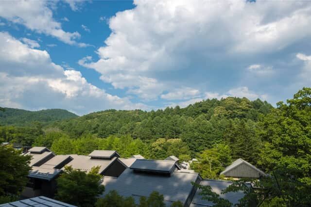 宿泊エリアには、1棟に5部屋ある建物などが点在していて、全部で77部屋を用意。客室タイプはそれぞれコンセプトが異なる「水波の部屋」、「山路地の部屋」、「庭路地の部屋」の3タイプ。全室テラスを備えたスイートルームで、谷の地形を活かした異なる景観が見られます。同じタイプの客室でも、1階と2階で間取りや内装が異なるなど、何度泊まっても新鮮です。