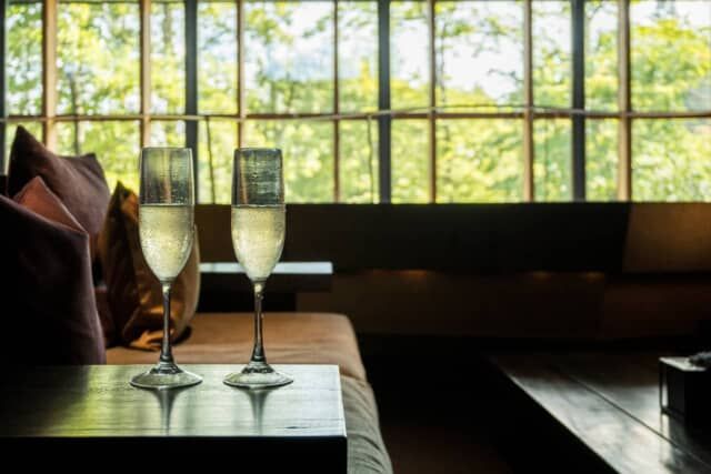 ライブラリーラウンジでは、13時から17時までの間はシャンパーニュやシードルが日替わりで用意され、時間によって提供されるアルコールも変わります。