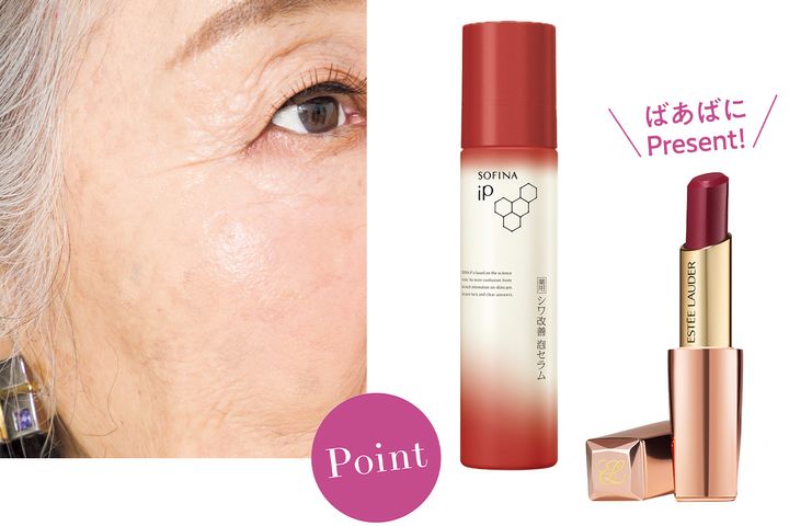 左から:ソフィーナ iP 【薬用】シワ改善泡セラム[医薬部外品]¥6,380〈編集部調べ〉(花王)ピュア カラー クリスタル バーム006 ¥4,950(エスティローダー)