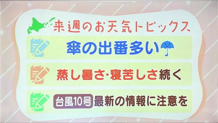 来週は傘の出番が多く、蒸し暑さや寝苦しさも続いていきそうです。その原因の一つとなるのが、きのう22日に発生した台風10号。