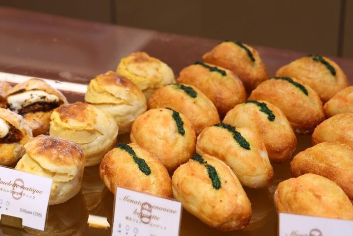フランスパンの生地は、ふわふわでソフトな食感。カレーグラタンやオムレツリュスティック、明太ジェノベーゼバゲットなど、おしゃれな食事系パンも。