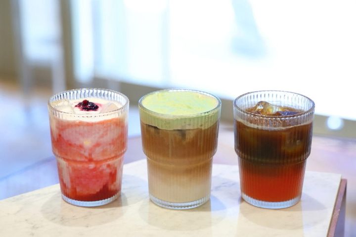 左から、ミックスベリーダコグルト¥770、リッチピスタチオラテ¥770、ブラッドオレンジコーヒー¥825。