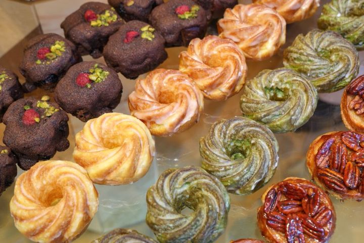 左からフランボワーズボストック¥356、焼きフレンチクルーラー 各¥270、クイニーアマンピーカンナッツ¥367。