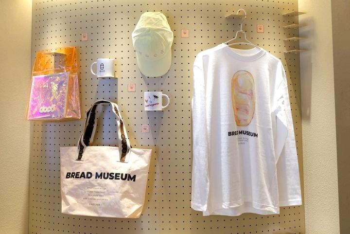 オリジナルのグッズも充実! パンをモチーフにしたキャップやTシャツ、バッグのほか、家でも楽しめるマグカップなど、パン好きにはたまらないアイテムです。