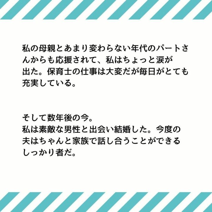 ヒロミは弁護士さんのおかげで、スムーズに離婚ができました。その後は保育士の仕事に戻り、再婚して充実した日々を過ごしていました。