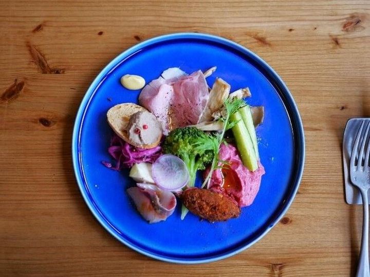 上から見ると、こんな感じ!ブルーのお皿が料理をより引き立てています^^