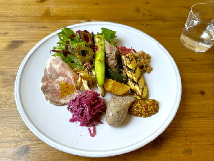 カンパチと水ナスのカルパッチョやキノコのマリネ、ハムとレバーペーストなど、とてもバランスの良い構成です。