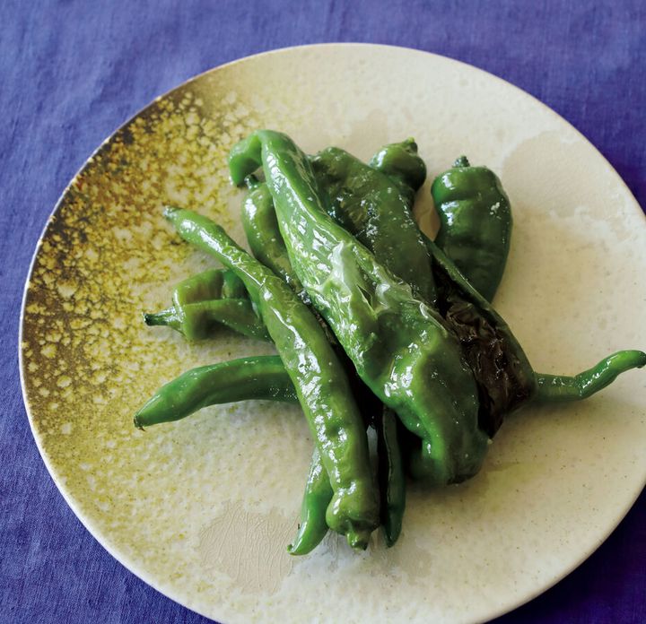 おいしさの秘訣は、野菜の水分だけでじっくりと蒸し焼きにすること! 鋳物ホーロー鍋など、ふたのできる厚手の鍋を使ってくださいね。万願寺唐辛子本来の甘みが引き出されて、オリーブオイルと塩だけでも絶品の味わいになります!