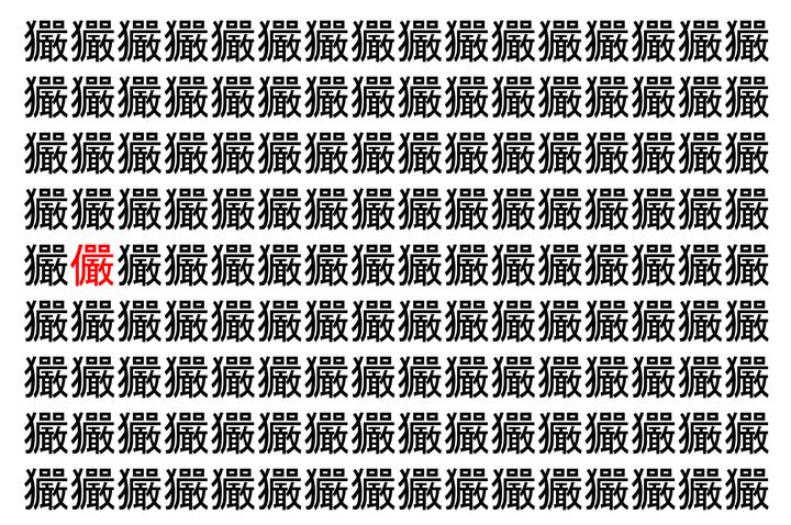 【脳トレ】「玁」の中に紛れて1つ違う文字がある!?あなたは何秒で探し出せるかな??【違う文字を探せ!】