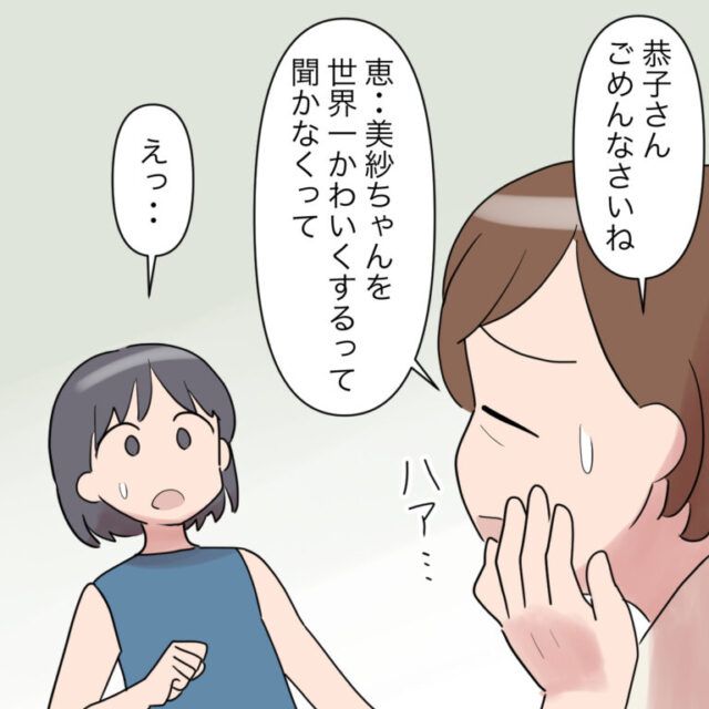 わがまま放題、言いたい放題で義実家にお姫様のように君臨していた恵さんは、恭子さんの夫修平さんの妹です。自分の天下だった義実家ですが、みんなが修平さんと恭子さんの娘、美紗ちゃんを最優先するようになったために不貞腐れていた恵さんも、純粋で可愛らしい美紗ちゃんに心を開き、姪愛はどんどん強まっていきました。