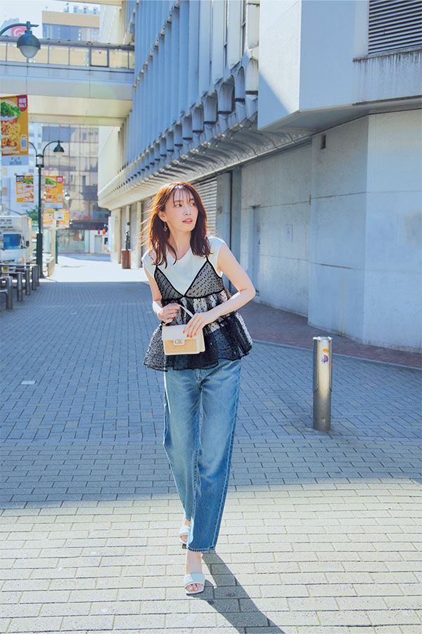 チュールキャミのレイヤードで定番コーデに甘さと今っぽさをプラス<8/24のコーデ>
