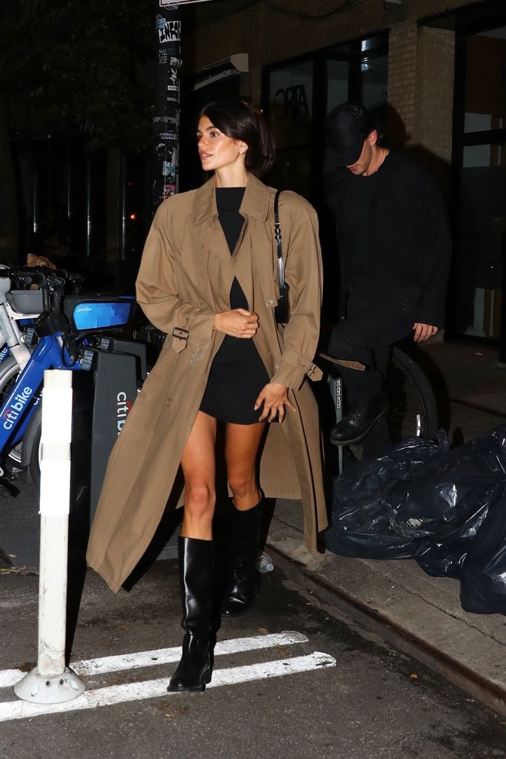 一方のガーバーはというと、ロンドンスサムサ(SUSAMUSA)によるブラックドレスの上にキャメルのトレンチコートを羽織り、ニーハイブーツ、セリーヌCELINE)の「TILLY」ショルダーバッグをスタイリングし、秋コーデの完璧な見本となるルックを披露。ブーツとトレンチの組み合わせは気温が下がり始める季節の鉄板だが、2024-25年秋冬シーズンの主要トレンドのひとつであるモックネックを取り入れることで、今らしさを演出しているのがポイントだ。