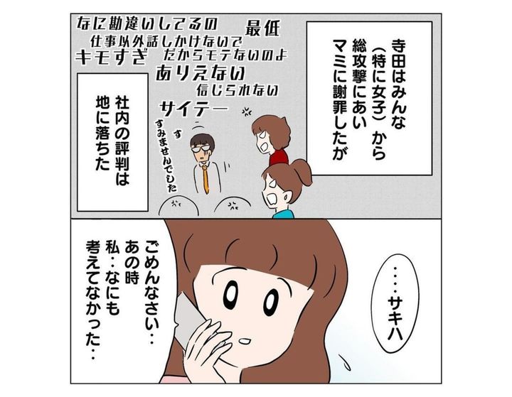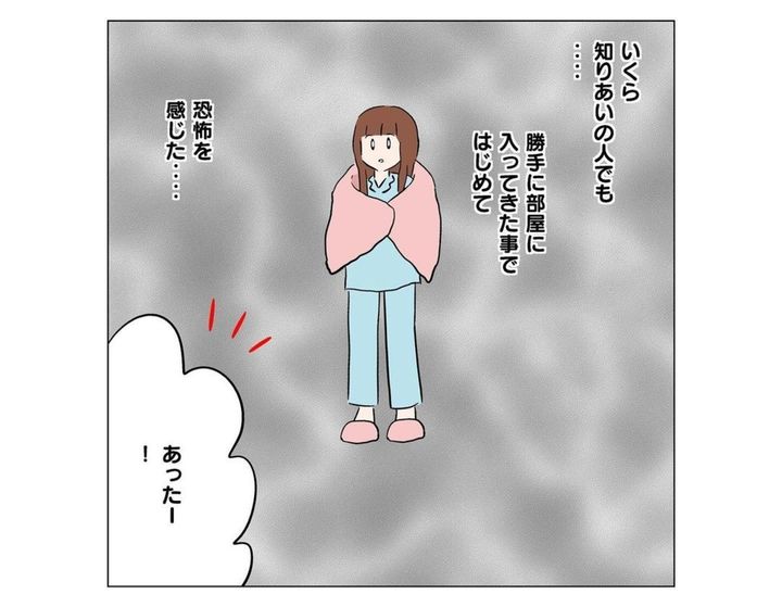 まさかのできごとに恐怖を感じたマミさんは、自分の一人暮らしに伴う危険性を認識するとともに、友人への配慮が足りなかったことにも気づき、反省するのでした。