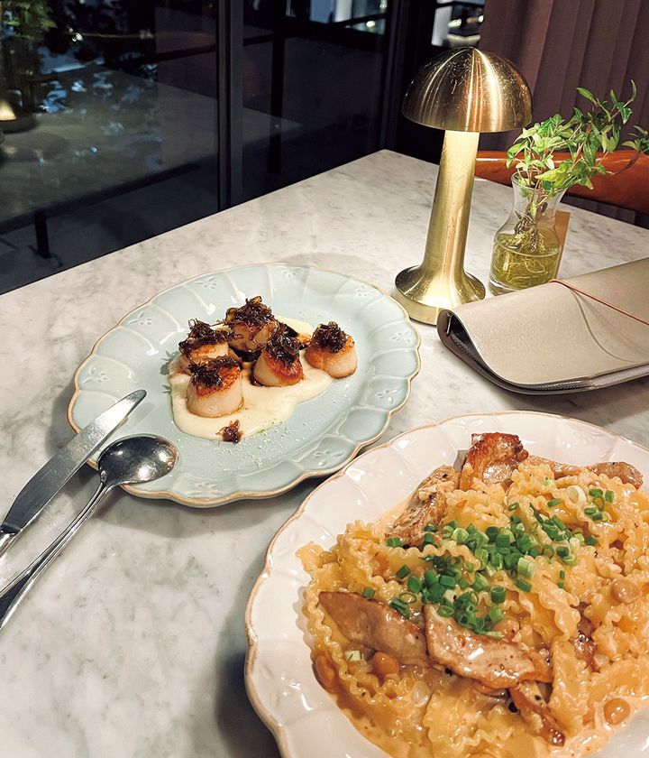 建築家と照明デザイナー夫婦がオーナー。味も雰囲気も抜群。テヨンのお気に入りはホタテのバルサミコソテー、豚トロと豆のパスタ。