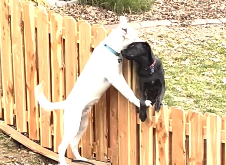 3. お隣さんとの関係良好♪ フェンス越しに遊ぶ犬さんたち。